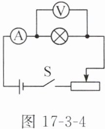3. 小明在测量小灯泡电阻的实验中设计的电路如图17-3-4所示,要探究小灯泡的电阻随电压的变化情况。当小明调节滑动变阻器后,电流表、电压表的读数分别为$ I_1 $、$ U_1 $。小明在表格中记录数据后,下一步应该做的是( )