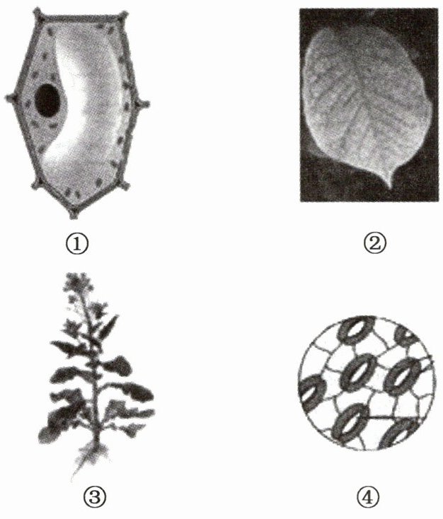 B 【提示】图中①是细胞,属于细胞层次;②是油菜的叶,属于器官层次;③是一株完整的油菜植株,属于植物体层次;④是由表皮细胞构成保护组织。因此,从宏观到微观的正确排序应该是③植物体→②器官→④组织→①细胞。