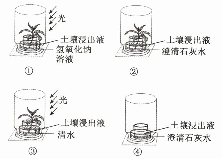 14. 科学的实验设计是获得科学结论的前提。现有如下图所示的四个实验装置,若要验证绿色植物需要在光下才能产生氧气,则应选用的实验组合是( )