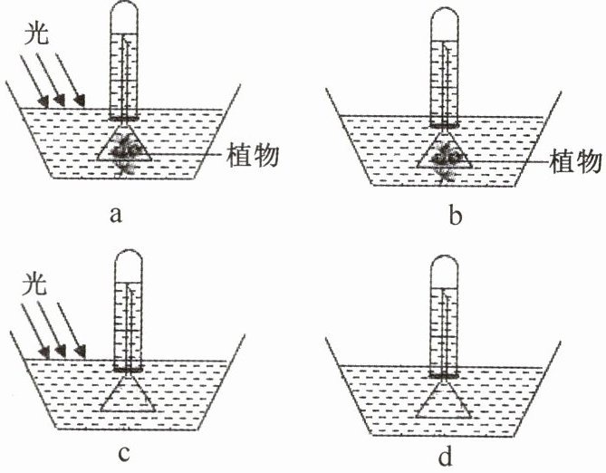 14.B 【提示】对照实验是指在探究某种条件对研究对象的影响时,对研究对象进行的,除了该条件不同以外,其他条件都相同的实验。实验a和b的变量是光,可验证绿色植物需要在光下才能产生氧气。