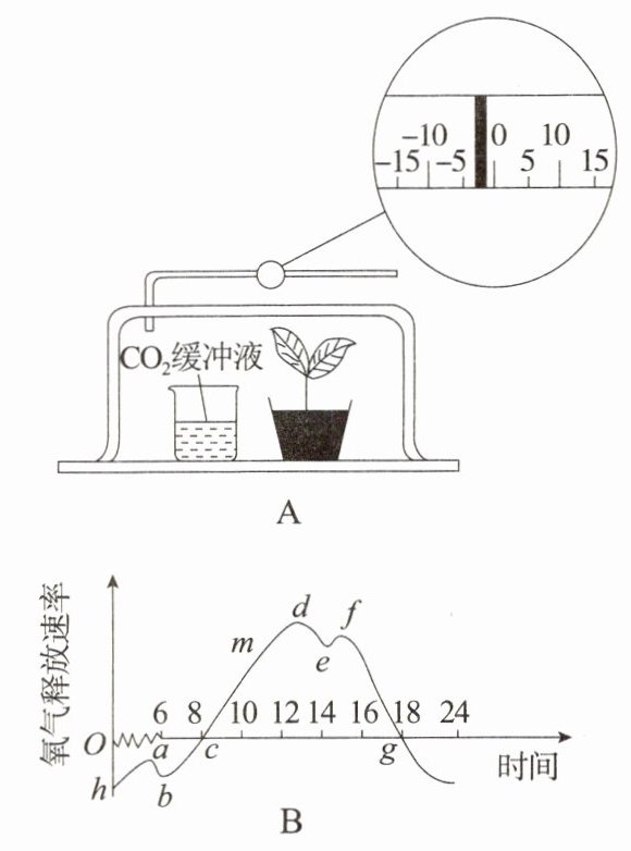 (2)生物小组将该装置放在自然环境下,测定夏季一昼夜小室内植物氧气释放速率的变化,得到如图B所示的曲线。