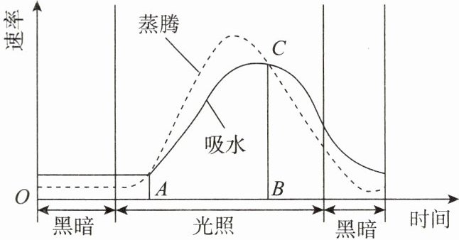 A.图中 C 点表示 B 时刻蒸腾速率等于吸水速率
