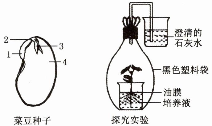 (2)如探究实验图所示,将菜豆幼苗放置在密闭的黑色塑料袋内,将产生的气体通入澄清的石灰水中,观察到的现象是______,这是因为菜豆萌发过程中______。