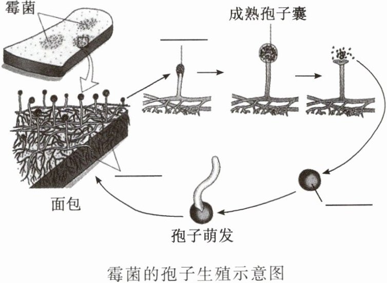 (4)霉菌的部分菌丝能产生大量的可以直接发育成新个体的细胞,叫作______。孢子随风飘散,遇到适宜的环境条件即发育成新菌体,霉菌的这种生殖方式叫作______,这种生殖方式是绝大多数真菌的生殖方式。