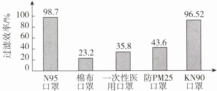 10. 戴口罩是有效控制流感病毒传播的方法之一,研究人员利用自动滤料测试仪对不同类型口罩进行检测,实验结果如图所示。