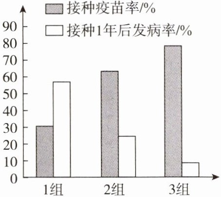 14. 为研究某市人群流感疫苗接种的保护效果,科研人员按流感疫苗接种覆盖率将某市居住人群划分为1组、2组和3组,比较人群接种1年后的流感发病率,结果如下图所示。以下分析不正确的是( )