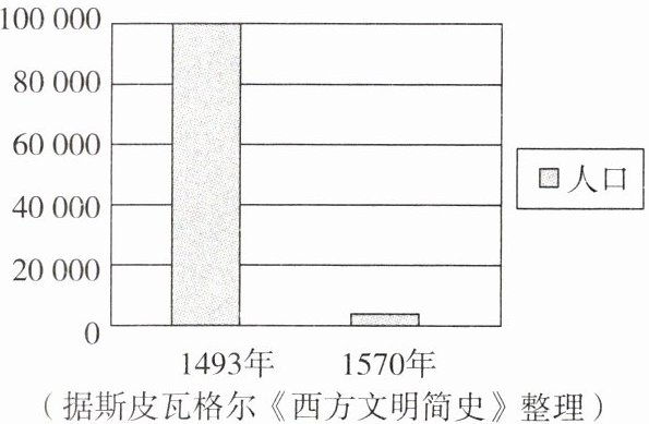 15. 下图是《西方文明简史》中记录的北美洲海地岛 1493—1570 年印第安人口变化情况(单位:人),导致这一变化的主要原因是(
