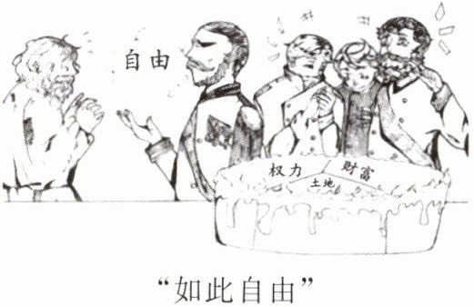 2. 下图取材于某学生创作的关于俄国农奴制改革的漫画。对农奴获得“如此自由”的理解,正确的是(