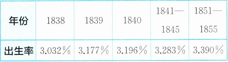 6. 下表反映的是 1838—1855 年英国人口出生率变化情况表(部分),与表中变化趋势紧密相关的是(