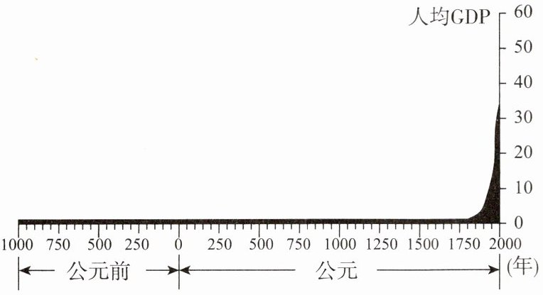 7. 下图是西方学者 1998 年对世界人均 GDP 历史的评估,从中可看出 1750 年后世界人均 GDP 发生了巨大变化。这主要是因为(