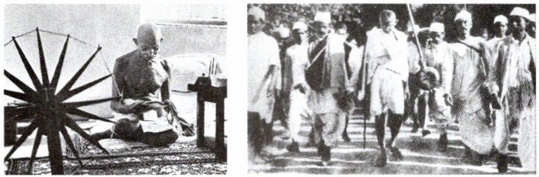 (2)目标:印度独立自治。主要事迹:鼓励发展手工纺织业,抵制英国商品;反对食盐专卖法,带领数十名追随者步行到海边,自取海水制盐。