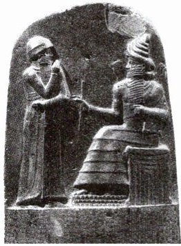 石柱上端是汉谟拉比王站在太阳神沙马什面前准备接受象征王权的权杖的浮雕,以象征君权神授,王权不可侵犯;下端是用楔形文字刻写的法典铭文,共3 500行、282条,现存于巴黎卢浮宫博物馆亚洲展览馆。