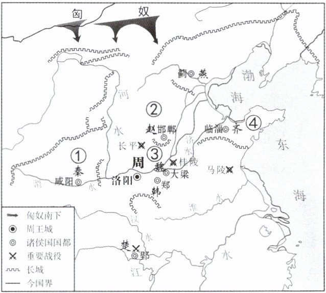 8. 下图反映了战国中期以后,通过不断的兼并战争,诸侯国势力此消彼长、先后崛起的情况。其中逐渐成为势力最强大的诸侯国的是图中的( )