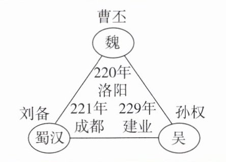 | 魏蜀吴的建立 | 背景 | 赤壁之战后,曹操完成北方的统一;刘备占领荆州南部以后,又向西南发展,占取益州;孙权把统治范围从扬州延伸到交州,不久又把刘备势力排挤出荆州地区 |