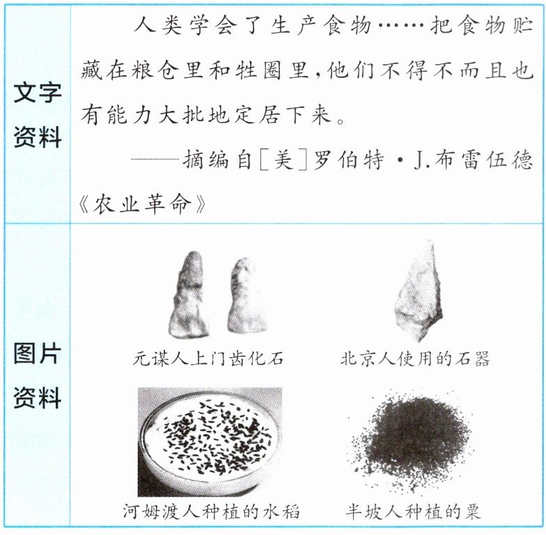 |文字资料|人类学会了生产食物……把食物贮藏在粮仓里和牲圈里,他们不得不而且也有能力大批地定居下来。——摘编自[美]罗伯特·J.布雷伍德《农业革命》|
