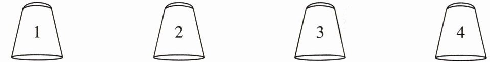 三、下面4个纸杯中,只有一个纸杯下面有糖,糖可能在哪个纸杯里?