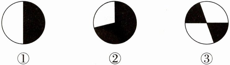 )。2. 如下图,有①、②、③三个转盘,小江和小兴玩转盘游戏,指针停在黑色区域算小江赢,停在白色区域算小兴赢。