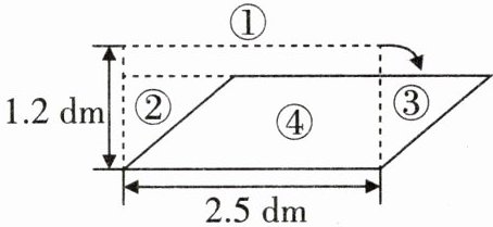 二、如图,把一个长2.5dm、宽1.2dm的长方形框架拉成平行四边形。晶晶说:“它的面积不变。”你认为晶晶说得对吗?说说你的理由。