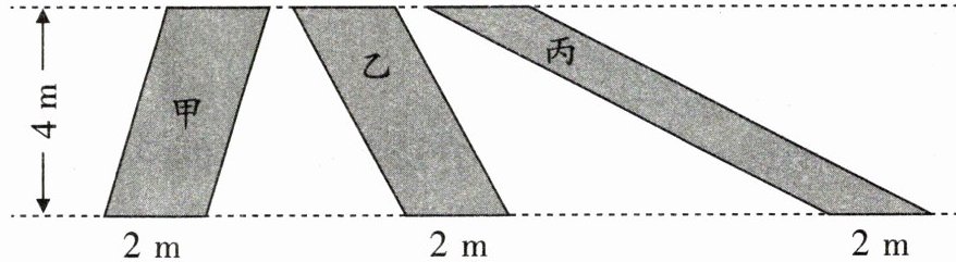 五、如右下图,一块平行四边形草地中间有一条长8m,宽1m的小路,求草地的面积。
