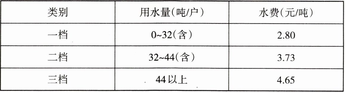 二、为了加强居民的节水意识,合理利用资源,某市自来水公司按月实行三档水价分段收费制度,收费标准如下表。(注:水费已包含污水处理费)