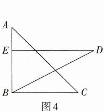 7. 把一副三角板按如图4放置,其中∠ABC= ∠DEB= 90°,∠A= 45°,∠D= 30°,斜边AC= BD= 10,若将三角板DEB绕点B逆时针旋转45°得到△D'E'B,则点A在△D'E'B的(