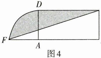 7. 一个商标图案如图4中阴影部分,在长方形ABCD中,AB= 8 cm,BC= 4 cm,以点A为圆心,AD为半径作圆与BA的延长线相交于点F,则商标图案的面积是(