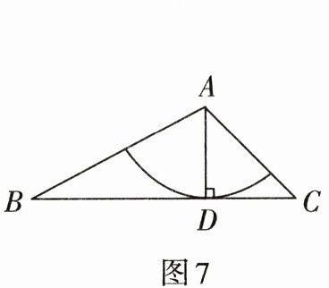 3. 如图7,在△ABC中,AB= 2,AC= $\sqrt{2}$,以A为圆心,1为半径的圆与边BC相切于点D,则∠BAC的度数是