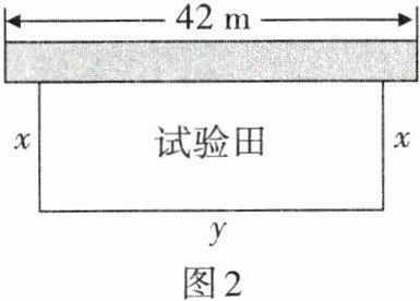 1. 如图2,某校劳动实践基地用总长为80 m的栅栏,围成一块一边靠墙的矩形实验田,墙长为42 m. 栅栏在安装过程中不重叠、无损耗,设矩形实验田与墙垂直的一边长为x(单位:m),与墙平行的一边长为y(单位:m),面积为S(单位:$m^{2}$).