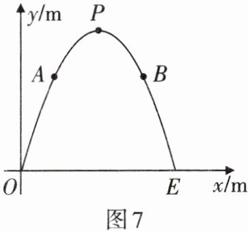 1. 现要修建一条隧道,其截面为抛物线型,如图7所示,线段OE表示水平的路面,以O为坐标原点,以OE所在直线为x轴,以过点O垂直于x轴的直线为y轴,建立平面直角坐标系.根据设计要求,OE= 10 m,该抛物线的顶点P到OE的距离为9 m.