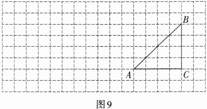1. 如图9,已知$\triangle ABC$的各顶点均在格点上,请在网格图中画出$\triangle ABC绕点A逆时针方向依次旋转45^\circ$,$90^\circ$,$135^\circ$后的图形.