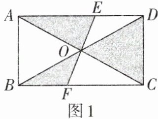 3. 如图1,在矩形ABCD中,对角线交于点O,过点O的直线分别交AD与BC于点E,F,AB= 2,BC= 3,则图中阴影部分的面积等于