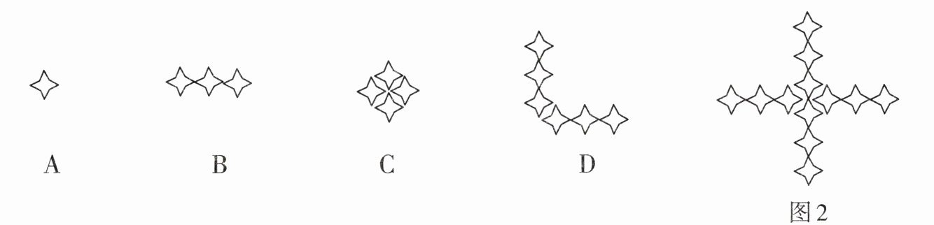 4. 下列A,B,C,D四种基本图形,其中经过平移、旋转或轴对称变换后,不能得到图2的是(