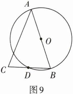 2. 如图9,AB为⊙O的直径,AB= AC,BC交⊙O于点D. 求证:BD= DC.
