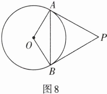2. 如图8,PA,PB是⊙O的切线,A,B分别为切点,∠OAB= 30°.