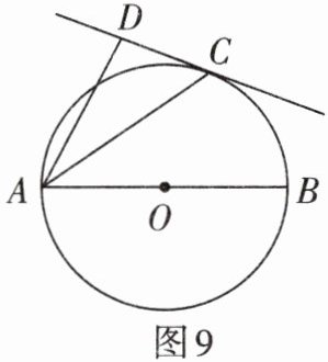 3. 如图9,AB为⊙O的直径,AC平分∠DAB交⊙O于点C,DC⊥AD于D.