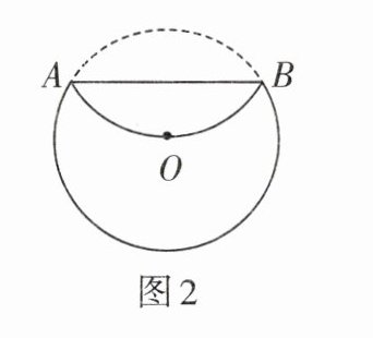 2. 如图2,将半径为4 cm的圆形纸片折叠后,圆弧恰好经过圆心O,则$\widehat{AB}$的长度为