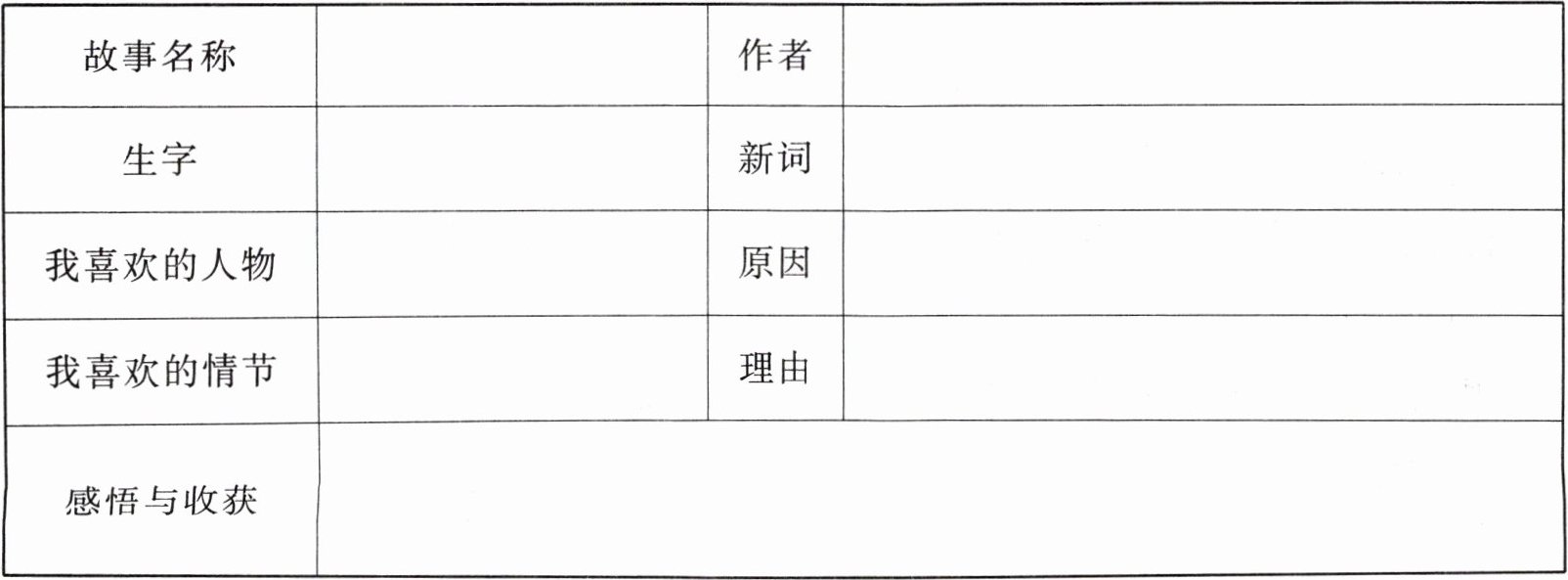 5. 你最近读了哪些童话故事?快来完成下面的阅读记录卡,记下你的收获吧。