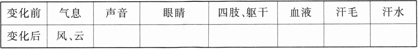 (1)盘古倒下以后,他的身体发生了巨大的变化。