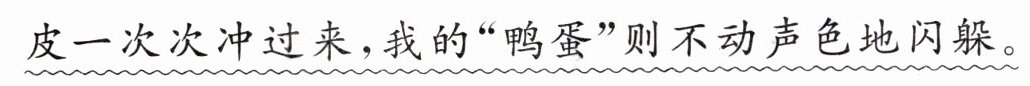C. 大陀螺摇头晃脑,挺着肚皮一次次冲过来,我的“鸭蛋”则不动声色地闪躲。