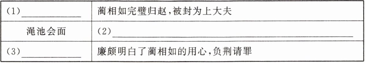 1. 廉颇:战国末期赵国名将,勇猛善战,曾率兵讨伐齐国,夺取阳晋,被封为上卿。后因蔺相如职位高于自己而心生不满,得知蔺相如以国家为重的苦心后,负荆请罪,与蔺相如结为刎颈之交。