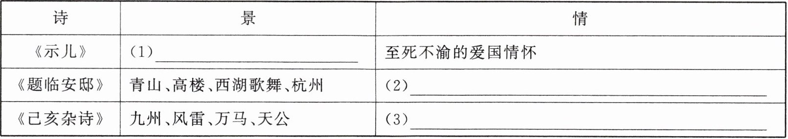 (1)九州、中原 (2)忧愤的爱国情怀 (3)渴望杰出人物涌现的爱国情怀