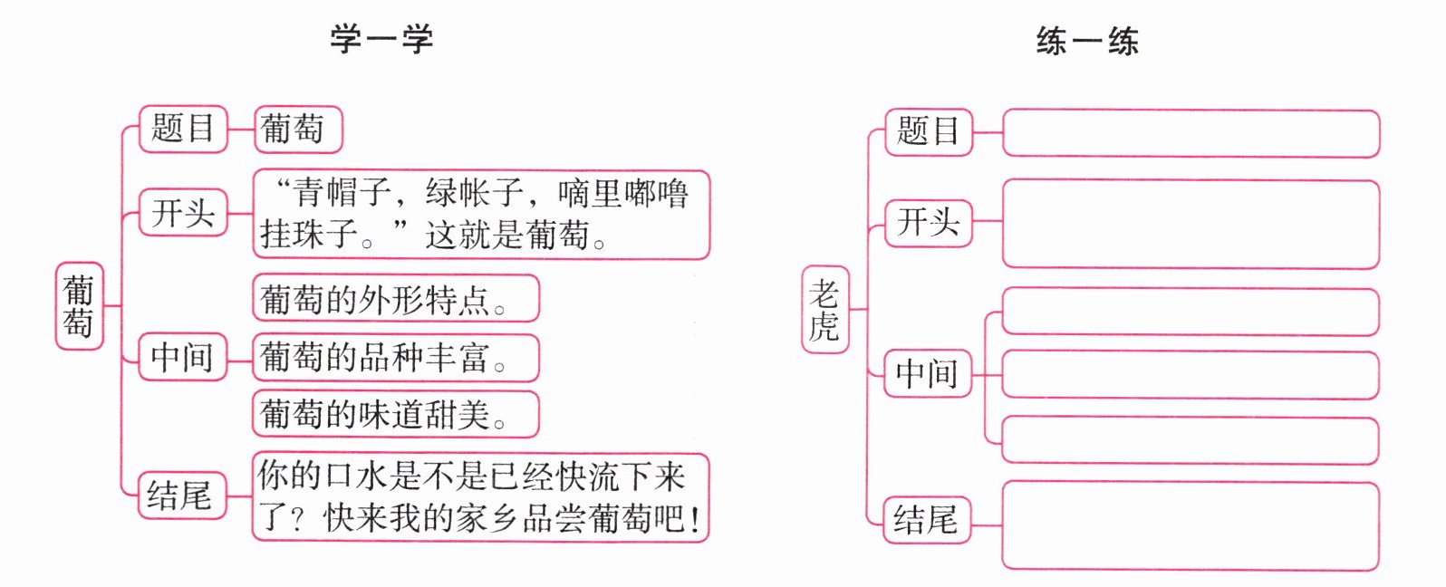 开头:人们一提到老虎,就会想到它那健壮的身体、锋利的爪牙和威风的样子。