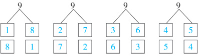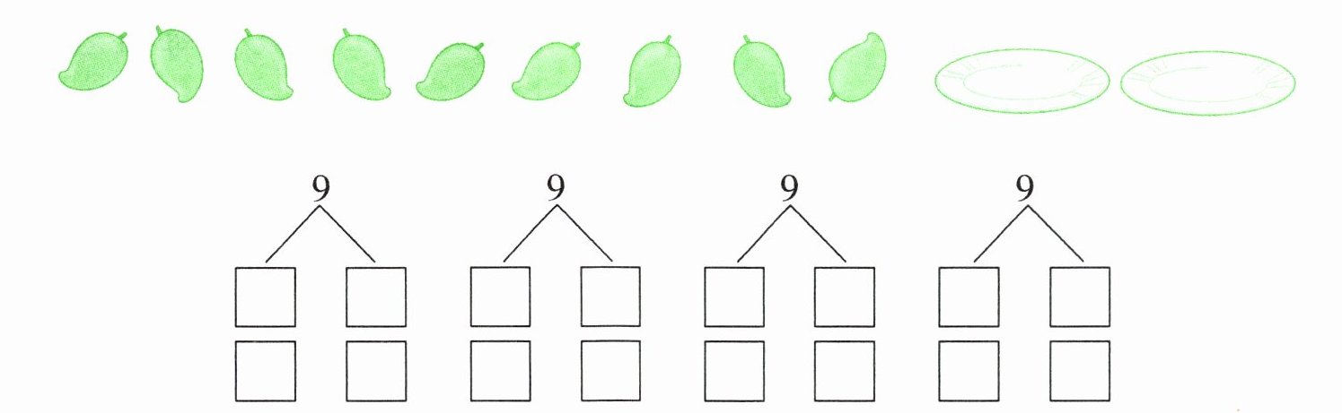 把 9 个杧果放到 2 个盘子里,可以怎样放?