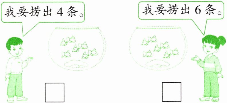 6. 迁移应用 哪个鱼缸剩的鱼多?请在多的下面画“$◯$”。