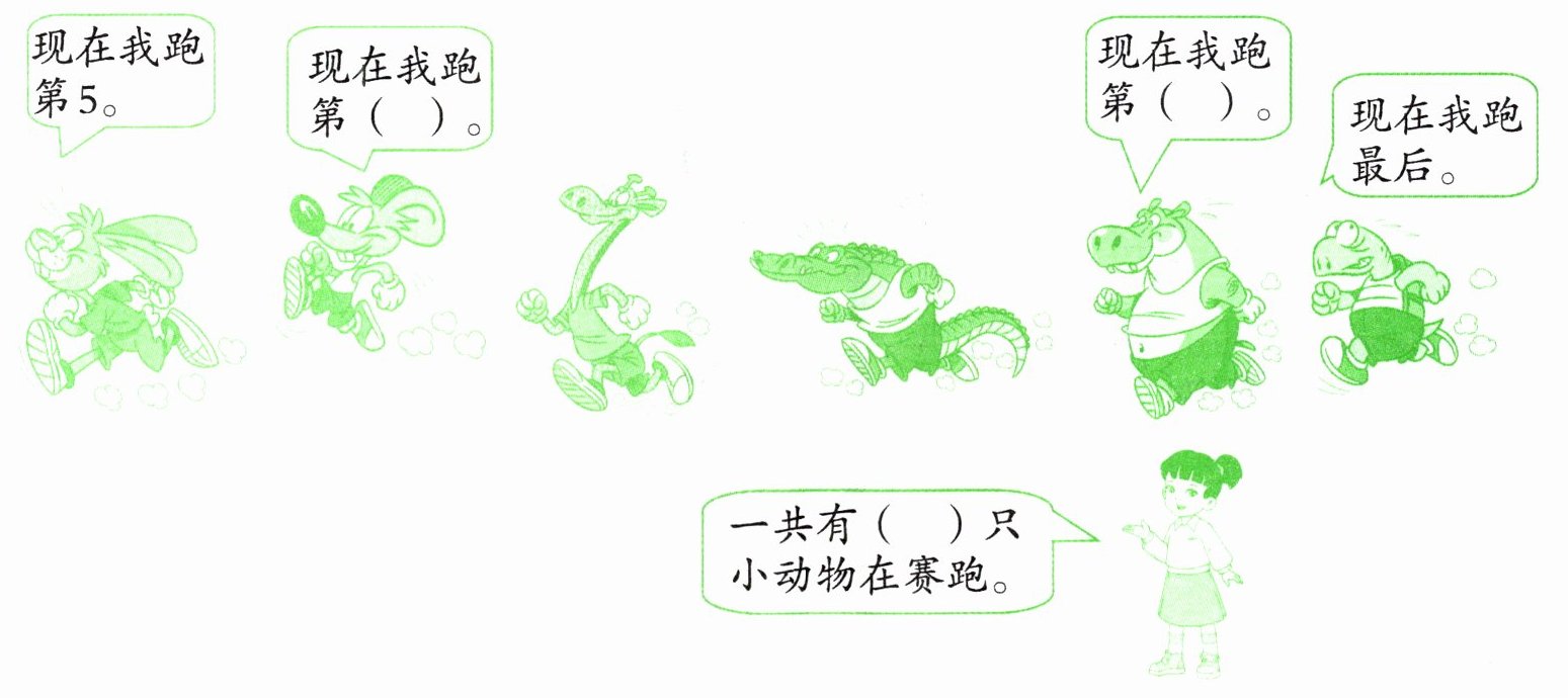 (1)给左边 3 只涂上红色,再给右起第 4 只涂上绿色。