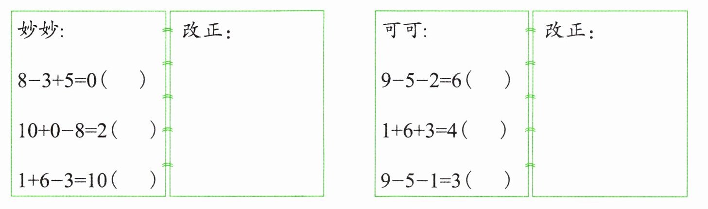 × 8-3+5=10 √ × 1+6-3=4 × 9-5-2=2 × 1+6+3=10 √