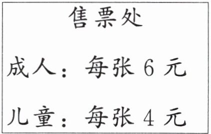 6×4+4=28(元) 口答:他们买门票一共要花28元。