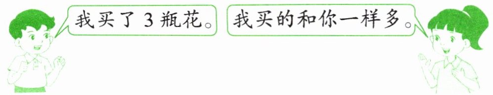 3+3=6(瓶) 6×3=18(元) 口答:两人一共买了6瓶花,一共花了18元。
