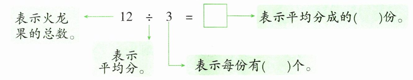 )盘。请根据平均分的经验说一说下面算式的含义。[发现]分物体时,平均分的过程可以用(