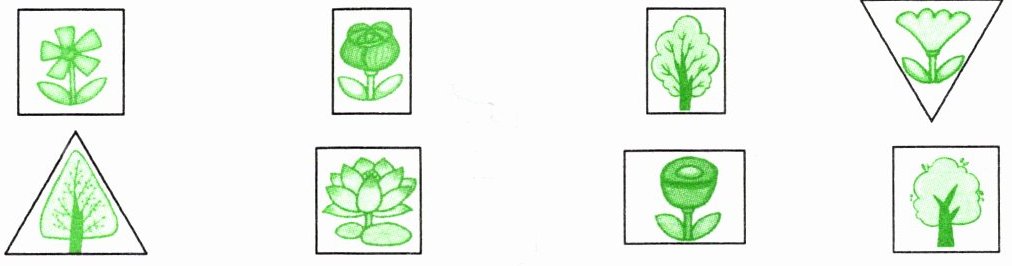 1. 美术课上,老师让同学们画一种植物,下面是8名同学的作品。